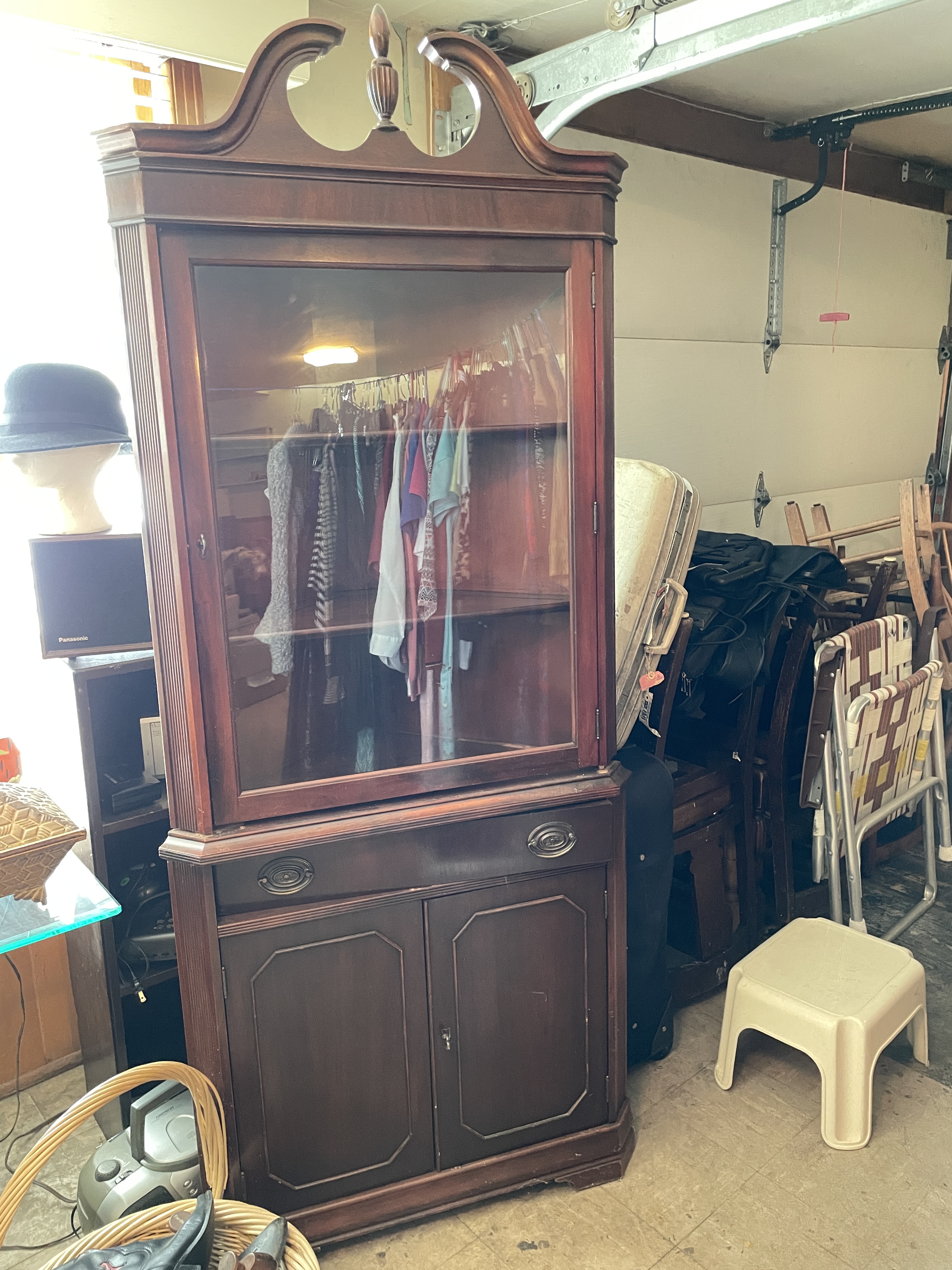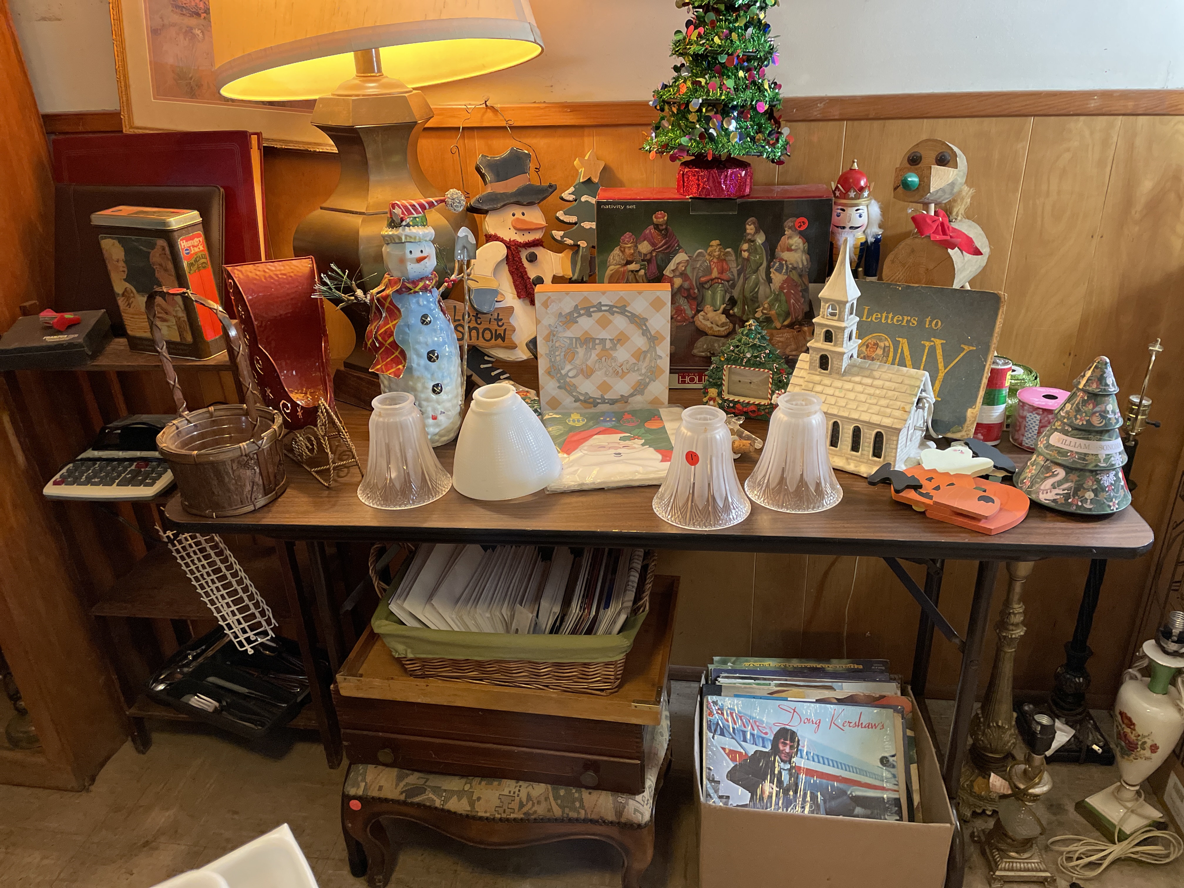 Don’t be CHICKEN, come peck out some deals! Everything must go and there are many more items not pictured, INCLUDING, BUT NOT LIMITED TO: LOW PROFILE LEGAL 2 DRAWER WOODEN FILE CABINET, 2 DRAWER METAL FILE CABINETS, LUGGAGE (BOTH ANTIQUE AND NEW), ELECTRIC STEAM MOP, ELECTRIC FLOOR WAXER/BUFFER, CLOCK RADIOS, BEAUTIFUL WOODEN DESK CREDENZA WITH GLASS CABINET HUTCH, BOOKS, COOK BOOKS, BOZE RADIOS, LOTS OF TOOLS, TORO BLOWER, LAWN MOWER, HAND TOOLS, DAY BED FRAME, HEAVY GLASS PIECES FOR TABLE TOPS, DOLLS, LINENS, WIGS, BELTS, CORNING WARE, FIGURINES, SMALL APPLIANCES, CANDY DISHES, COOKWARE, UTENSILS, KNIVES, SILVERWARE, SERVING PIECES, MIXING BOWLS, WATERFORD AND CUT GLASS SERVING PIECES, GARDENING TOOLS AND IMPLEMENTS, CHILDS BICYCLE, HEALTH EQUIPMENT & MORE!