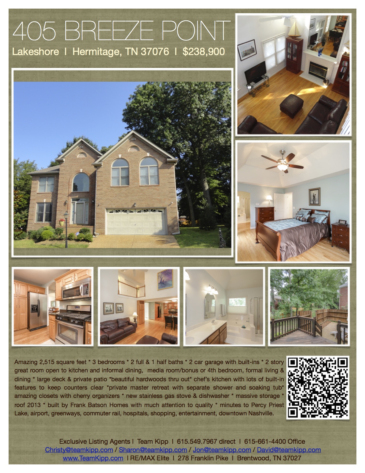 Open House Sunday, August 24th @ 2 – 4 pm at 405 Breeze Point, Hermitage, near Percy Priest Lake